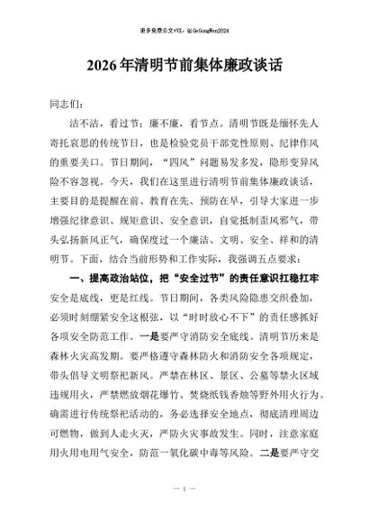 / 【七哥公文】2026年:2026年清明节前集体廉政谈话+更多免费公文+VX:QiGeGongWen2024