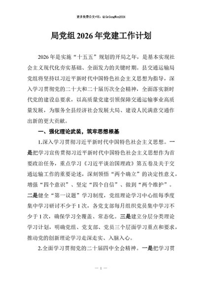 / 【七哥公文】2026年:局党组2026年党建工作计划+更多免费公文+VX:QiGeGongWen2024