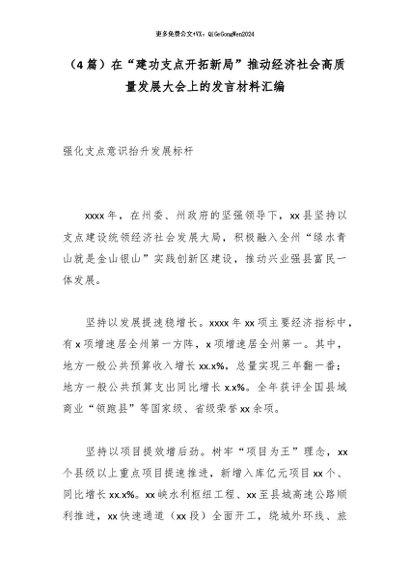 【七哥公文】2026年:(4篇)在“建功支点开拓新局”推动经济社会高质量发展大会上的发言材料汇编+更多免费公文+VX:QiGeGongWen2024