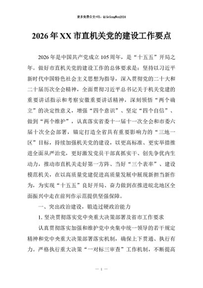 / 【七哥公文】2026年:2026年XX市直机关党的建设工作要点+更多免费公文+VX:QiGeGongWen2024