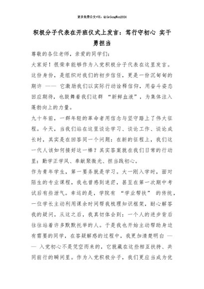 【七哥公文】2026年:积极分子代表在开班仪式上发言:笃行守初心 实干勇担当_副本+更多免费公文+VX:QiGeGongWen2024