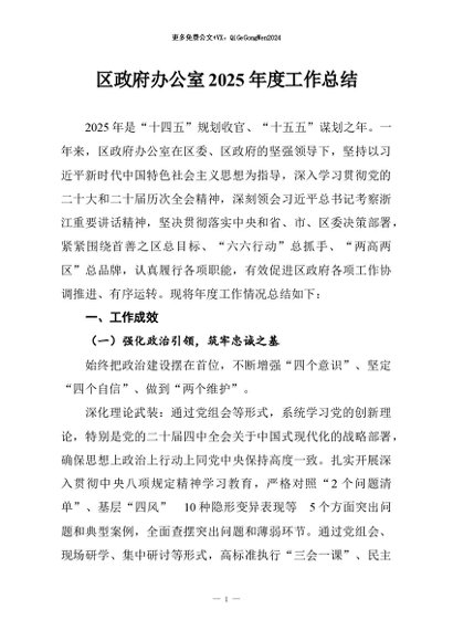 / 【七哥公文】2026年:区政府办公室2025年度工作总结+更多免费公文+VX:QiGeGongWen2024