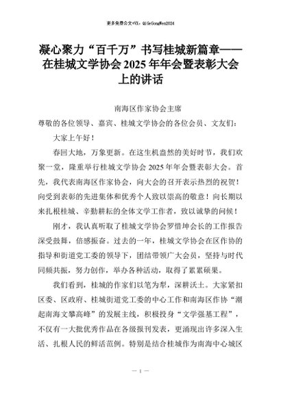【七哥公文】2026年:凝心聚力“百千万”书写桂城新篇章——在桂城文学协会2025年年会暨表彰大会上的讲话+更多免费公文+VX:QiGeGongWen2024