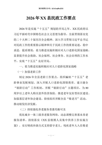 / 【七哥公文】2026年:2026年XX县民政工作要点+更多免费公文+VX:QiGeGongWen2024