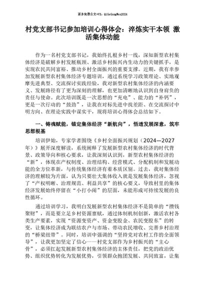 【七哥公文】2026年:村党支部书记参加培训心得体会:淬炼实干本领 激活集体动能+更多免费公文+VX:QiGeGongWen2024