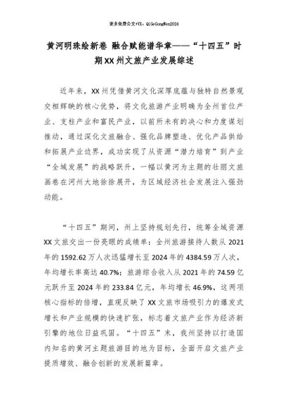 【七哥公文】2026年:黄河明珠绘新卷 融合赋能谱华章——“十四五”时期XX州文旅产业发展综述_副本+更多免费公文+VX:QiGeGongWen2024