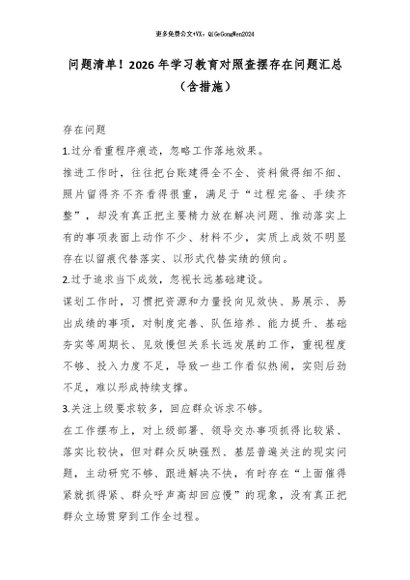 【七哥公文】2026年:问题清单!2026年学习教育对照查摆存在问题汇总(含措施)_副本+更多免费公文+VX:QiGeGongWen2024