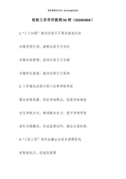 【七哥公文】2026年:财政工作写作提纲30例(20260404)_副本+更多免费公文+VX:QiGeGongWen2024