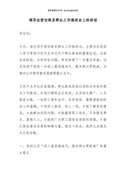 / 【七哥公文】2026年:领导在密切联系群众工作推进会上的讲话_副本+更多免费公文+VX:QiGeGongWen2024