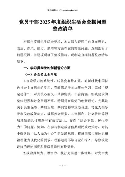 / 【七哥公文】2026年:党员干部2025年度组织生活会查摆问题整改清单+更多免费公文+VX:QiGeGongWen2024