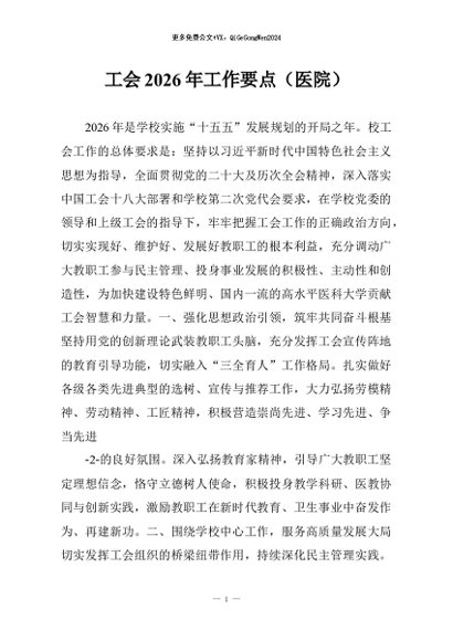 / 【七哥公文】2026年:工会2026年工作要点(医院)+更多免费公文+VX:QiGeGongWen2024