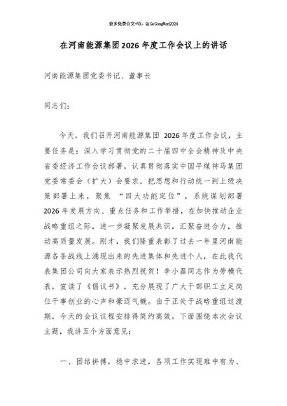 【七哥公文】2026年:在河南能源集团2026年度工作会议上的讲话_副本+更多免费公文+VX:QiGeGongWen2024