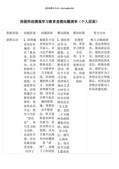 / 【七哥公文】2026年:拘留所政绩观学习教育查摆问题清单(个人)+更多免费公文+VX:QiGeGongWen2024