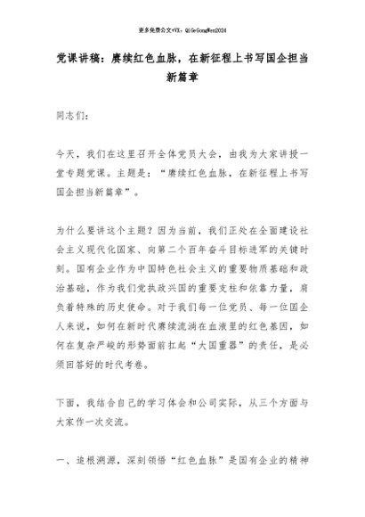 【七哥公文】2026年:党课讲稿:赓续红色血脉,在新征程上书写国企担当新篇章_副本+更多免费公文+VX:QiGeGongWen2024