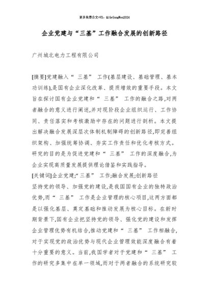 / 【七哥公文】2026年:企业党建与“三基”工作融合发展的创新路径_副本+更多免费公文+VX:QiGeGongWen2024