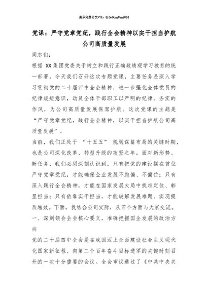 【七哥公文】2026年:党课:严守党章党纪,践行全会精神以实干担当护航公司高质量发展_副本+更多免费公文+VX:QiGeGongWen2024