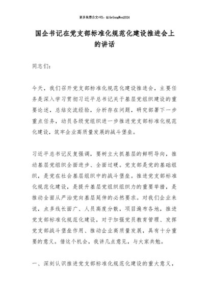 【七哥公文】2026年:国企书记在党支部标准化规范化建设推进会上的讲话_副本+更多免费公文+VX:QiGeGongWen2024