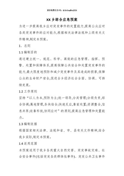 / 【七哥公文】2026年:XX乡综合应急预案_副本+更多免费公文+VX:QiGeGongWen2024