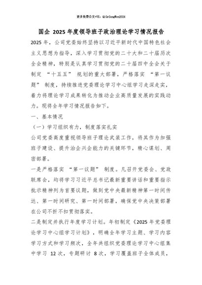 【七哥公文】2026年:国企 2025 年度领导班子政治理论学习情况报告_副本+更多免费公文+VX:QiGeGongWen2024