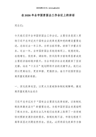 / 【七哥公文】2026年:在2026年全市国资国企工作会议上的讲话_副本+更多免费公文+VX:QiGeGongWen2024