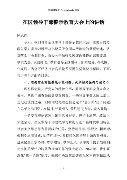 / 【七哥公文】2026年:在区领导干部警示教育大会上的讲话+更多免费公文+VX:QiGeGongWen2024