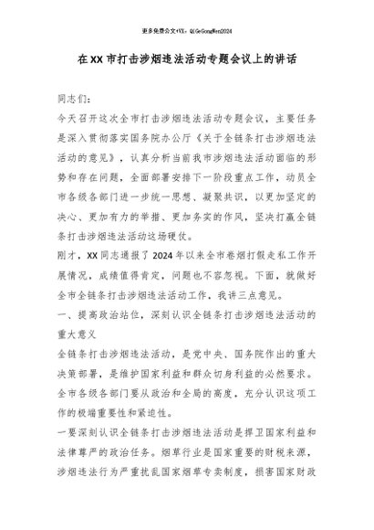 / 【七哥公文】2026年:在XX市打击涉烟违法活动专题会议上的讲话_副本+更多免费公文+VX:QiGeGongWen2024