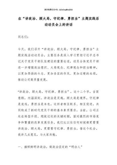 【七哥公文】2026年:在“讲政治、顾大局,守纪律、勇担当”主题实践活动动员会上的讲话_副本+更多免费公文+VX:QiGeGongWen2024