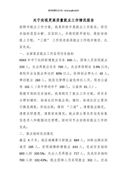 / 【七哥公文】2026年:关于实现更高质量就业工作情况报告_副本+更多免费公文+VX:QiGeGongWen2024