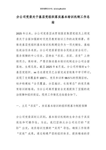 【七哥公文】2026年:分公司党委关于基层党组织落实基本培训机制工作总结_副本+更多免费公文+VX:QiGeGongWen2024