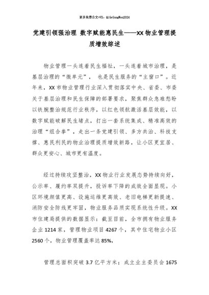 【七哥公文】2026年:党建引领强治理 数字赋能惠民生——XX物业管理提质增效综述_副本+更多免费公文+VX:QiGeGongWen2024