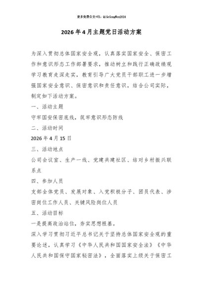 / 【七哥公文】2026年:2026年4月主题党日活动方案_副本+更多免费公文+VX:QiGeGongWen2024