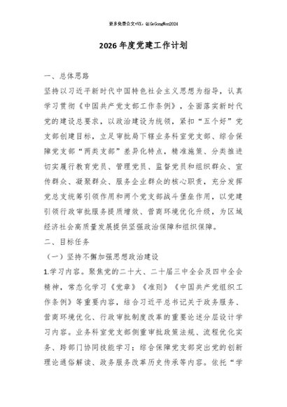 / 【七哥公文】2026年:2026年度党建工作计划_副本+更多免费公文+VX:QiGeGongWen2024