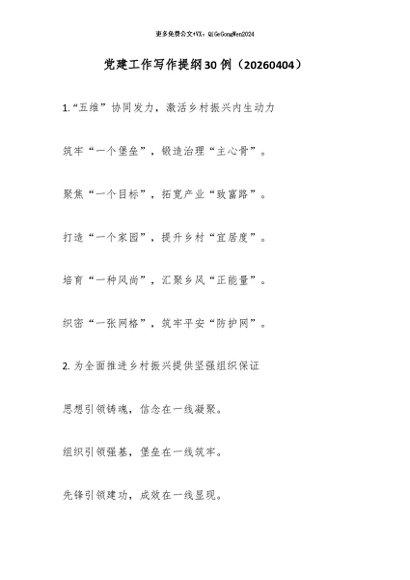 【七哥公文】2026年:党建工作写作提纲30例(20260404)_副本+更多免费公文+VX:QiGeGongWen2024