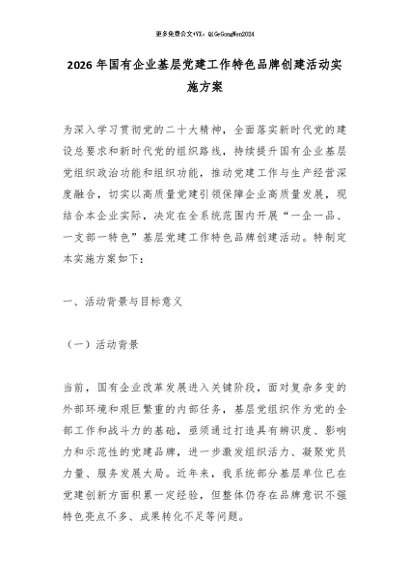 【七哥公文】2026年:2026年国有企业基层党建工作特色品牌创建活动实施方案_副本+更多免费公文+VX:QiGeGongWen2024