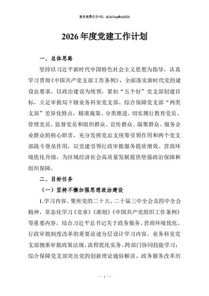 / 【七哥公文】2026年:2026年度党建工作计划+更多免费公文+VX:QiGeGongWen2024