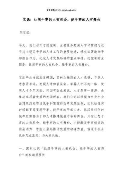 【七哥公文】2026年:党课:让想干事的人有机会,能干事的人有舞台_副本+更多免费公文+VX:QiGeGongWen2024