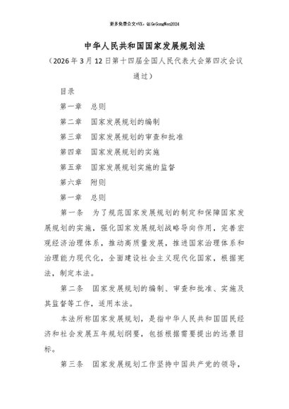 / 【七哥公文】2026年:中华人民共和国国家发展规划法+更多免费公文+VX:QiGeGongWen2024