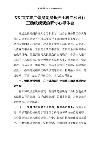 【七哥公文】2026年:市文旅广体局副局长树立和践行正确政绩观的研讨心得体会+更多免费公文+VX:QiGeGongWen2024