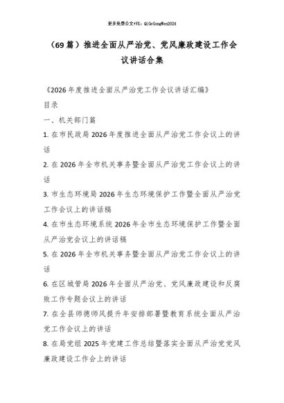 【七哥公文】2026年:(69篇)推进全面从严治党、党风廉政建设工作会议讲话合集+更多免费公文+VX:QiGeGongWen2024