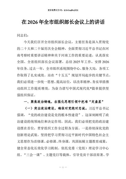 / 【七哥公文】2026年:在2026年全市组织部长会议上的讲话+更多免费公文+VX:QiGeGongWen2024