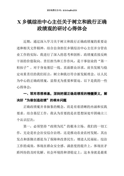 【七哥公文】2026年:乡镇综治中心主任树立和践行正确政绩观的研讨心得体会+更多免费公文+VX:QiGeGongWen2024