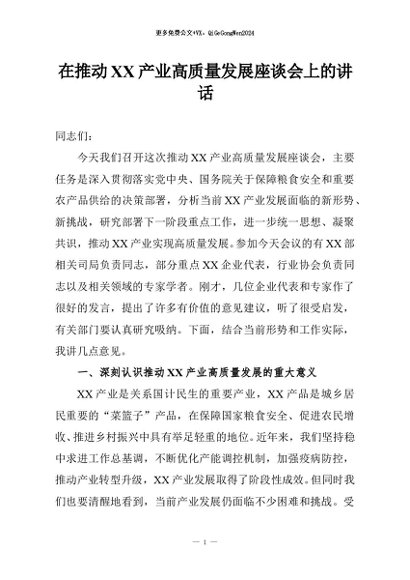 【七哥公文】2026年:在推动XX产业高质量发展座谈会上的讲话+更多免费公文+VX:QiGeGongWen2024