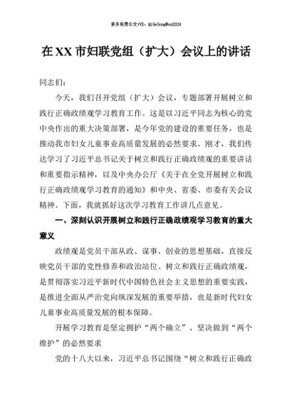 / 【七哥公文】2026年:在市妇联党组(扩大)会议上的讲话+更多免费公文+VX:QiGeGongWen2024