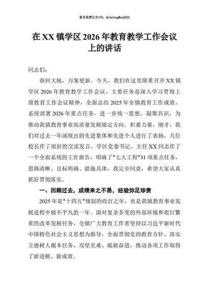 / 【七哥公文】2026年:在镇学区2026年教育教学工作会议上的讲话+更多免费公文+VX:QiGeGongWen2024