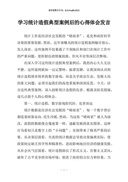 【七哥公文】2026年:学习统计造假典型案例后的心得体会发言+更多免费公文+VX:QiGeGongWen2024