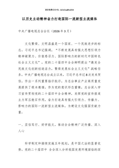 【七哥公文】2026年:以历史主动精神奋力打造国际一流新型主流媒体_副本+更多免费公文+VX:QiGeGongWen2024