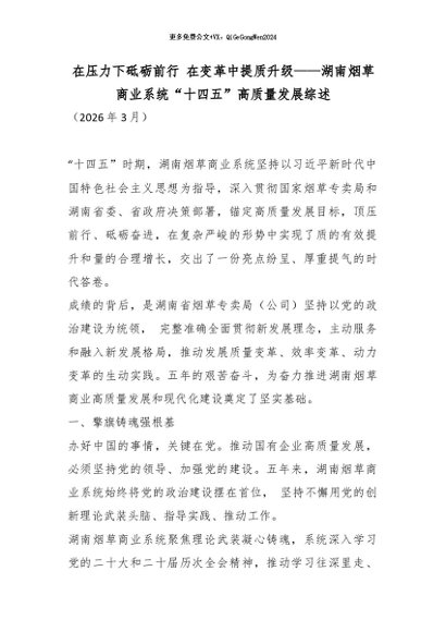【七哥公文】2026年:在压力下砥砺前行 在变革中提质升级——湖南烟草商业系统“十四五”高质量发展综述_副本+更多免费公文+VX:QiGeGongWen2024