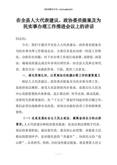 【七哥公文】2026年:在全县人大代表建议、政协委员提案及为民实事办理工作推进会议上的讲话+更多免费公文+VX:QiGeGongWen2024