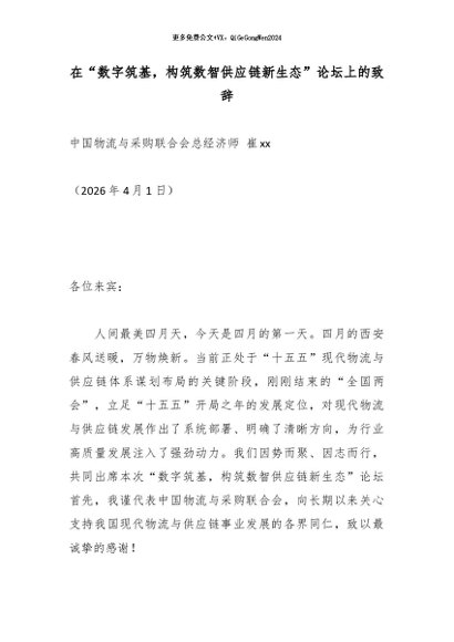 【七哥公文】2026年:在“数字筑基,构筑数智供应链新生态”论坛上的致辞_副本+更多免费公文+VX:QiGeGongWen2024