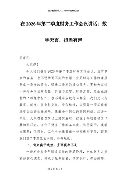 【七哥公文】2026年:在2026年第二季度财务工作会议讲话:数字无言,担当有声+更多免费公文+VX:QiGeGongWen2024